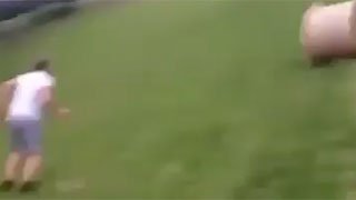It looks like a lot of fun to run and jump over by bale of hay. Checkout this fail when a guy gets hit by massive bale of hay. Ohh hes winded!